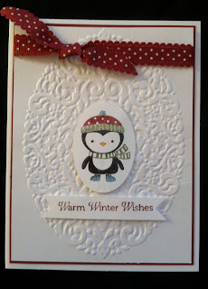 I love love the new Snowflake die from the holiday mini catalog. This is done in Island Indigo. The sentiment is from Delightful Dozen. DSP is from Festival of Prints.